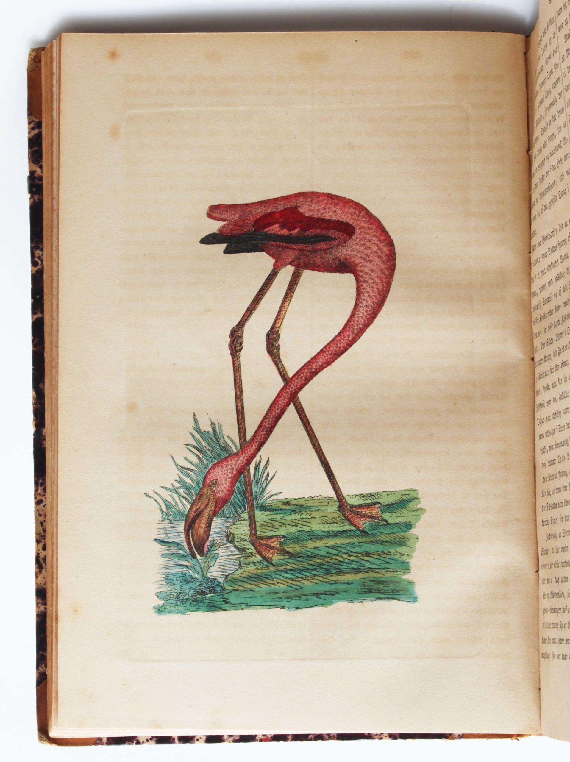 Forlagt af Bog- og Papirhandler C. Steen, 1843. Lex8vo i et noget slidt men solidt samtidigt halvlæder med rygtitel i guld. 574 spalter, (1) s. Illustreret med mange helsides kobberstik, stålstik og llitografier, herunder 9 helsides håndkolorerede illustrationer: Sommerfugl, Flamingo, Firben etc. Tavlerne er generelt fine, især farvetavlerne er generelt rene, bogen er ellers gennemgående aldersplettet og med enkelte skjolder og rifter i margin uden at dette generelt berører de felste illustrationer (kun enkelte er stærkt plettede) og sjældent heller tekst. Alt i alt et ganske godt og komplet eksemplar.