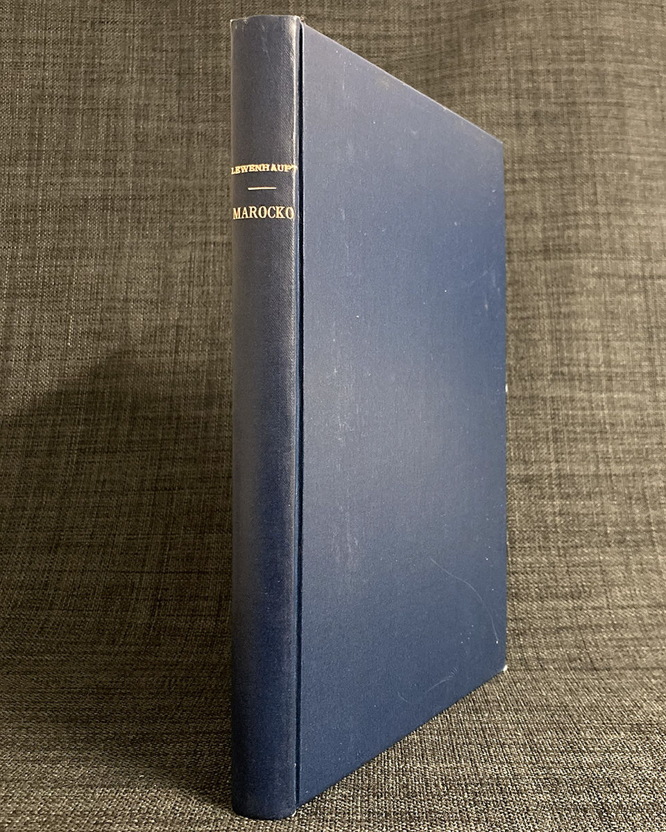 Innehåll: "Ceuta och Tétuan", "Från Algeciras till Tanger", "Tanger", "Sok-el-Barra", "Tangers kasba", "Tangers omgivningar", "Pasteurinstitutet i Tanger", "Marockos historia", "Marockos styrelse", "Några allmänna ord om Marocko", "Från Tanger till Casablanca", "Casablanca", "Från Casablanca till Marrakech", "Marrakech", "Palatset Bahia", "Marrakech", "Rabat", "Chella", "Rabats kasba", "Salé", "Meknès" "Volubilis och Moulay Idris", "Fez-el-Bali", "Fez-Djedid", "Hemliivet i Fez", "Industrier i Fez" samt "Fez' omgivningar". - - - "Morocco. The land of the setting sun", in Swedish, publisher's blue cloth, fine, engraved bookplate of Swedish industrialist Seth Kempe (1857-1946). - - - [Contents (NB in Swedish): "Ceuta and Tetuan", "From Algeciras to Tangier", "Tangier", "Sok-el-Barra", "Tangier Kasbah", "Tangier Surroundings", "Pasteur Institute in Tangier", "History of Morocco", "Morocco Government", "A Few General Words about Morocco", "From Tangier to Casablanca", "Casablanca", "From Casablanca to Marrakech", "Marrakech", "Bahia Palace", "Marrakech", "Rabat", "Chella", "Rabat Kasbah", "Salé", "Meknès", "Volubilis and Moulay Idris", "Fez-el-Bali", "Fez-Djedid", "Home Life in Fez", "Industries in Fez" and "Fez Surroundings".]