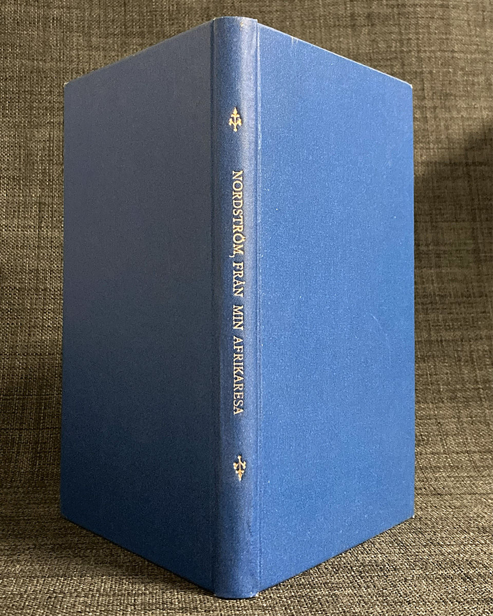 Innehåll: "Resan till Kapstaden", "Kapstaden", "Sydafrikanska Unionen", "Förhållandet mellan engelsmän och de holländska folkelementen", "Järnvägarna", "Landets utseende m.m.", "Diamanter", "Johannesburg", "Guldgrufvorna", "Pretoria", "De infödda svarta", "Färden Johannesburg-Durban", "Stenkol äfvensom järnmalm i Sydafrika", "Ladysmith", "Boerna komma till Natal, och Natal blir engelsk koloni", "Durban", "Återfärd till Kapstaden", "East London", "Exportmöjligheter för Sverige", "Port Elizabeth", "Jakt", "Åter i Kapstaden" samt "Hemresan". - - - "From my trip to Africa. Notes and impressions. [...] With 15 illustrations", in Swedish, publisher's blue cloth, engraved bookplate of Swedish industrialist Seth Kempe (1857-1946). - - - [Contents (NB in Swedish): "Journey to Cape Town", "Cape Town", "The Union of South Africa", "The Relationship between the English and the Dutch Folk Elements", "The Railways", "The Appearance of the Country, etc.", "Diamonds", "Johannesburg", "The Gold Mines", "Pretoria", "The Native Blacks", "The Johannesburg-Durban Journey", "Coal as well as Iron Ore in South Africa", "Ladysmith", "The Boers come to Natal, and Natal becomes an English colony", "Durban", "Return to Cape Town", "East London", "Export Opportunities for Sweden", "Port Elizabeth", "Hunting", "Back in Cape Town" and "The Journey Home".]