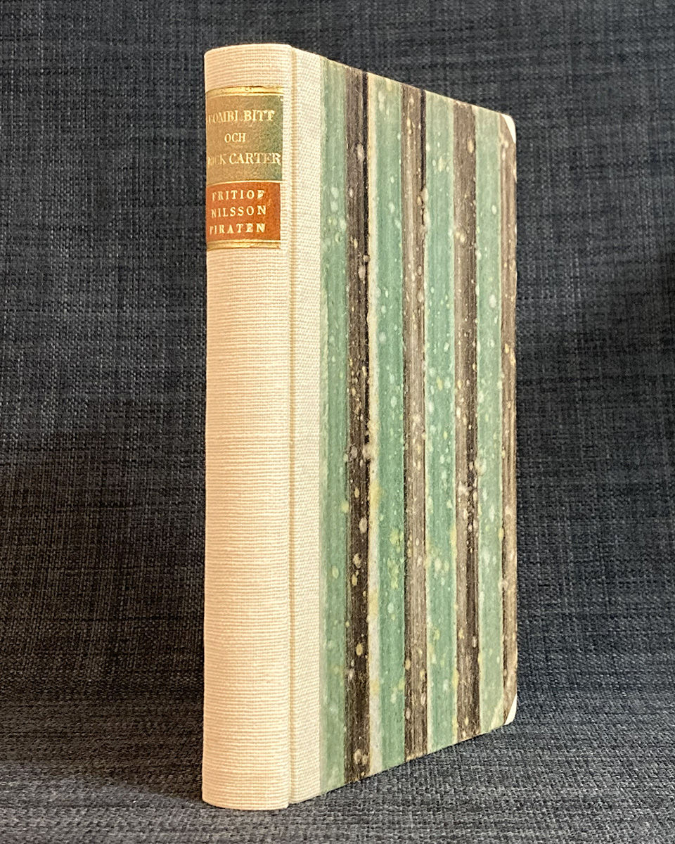 Stockholm, Albert Bonniers förlag, 1946. 8:o. 296 sid. Samtida halvlinneband, ryggen med delad grön och brun titeletikett, marmorerade pärmpapper, främre dek. omslaget i färg medbundet (Fröbergs Linköping). Helt obetydliga bruksspår, gott skick.