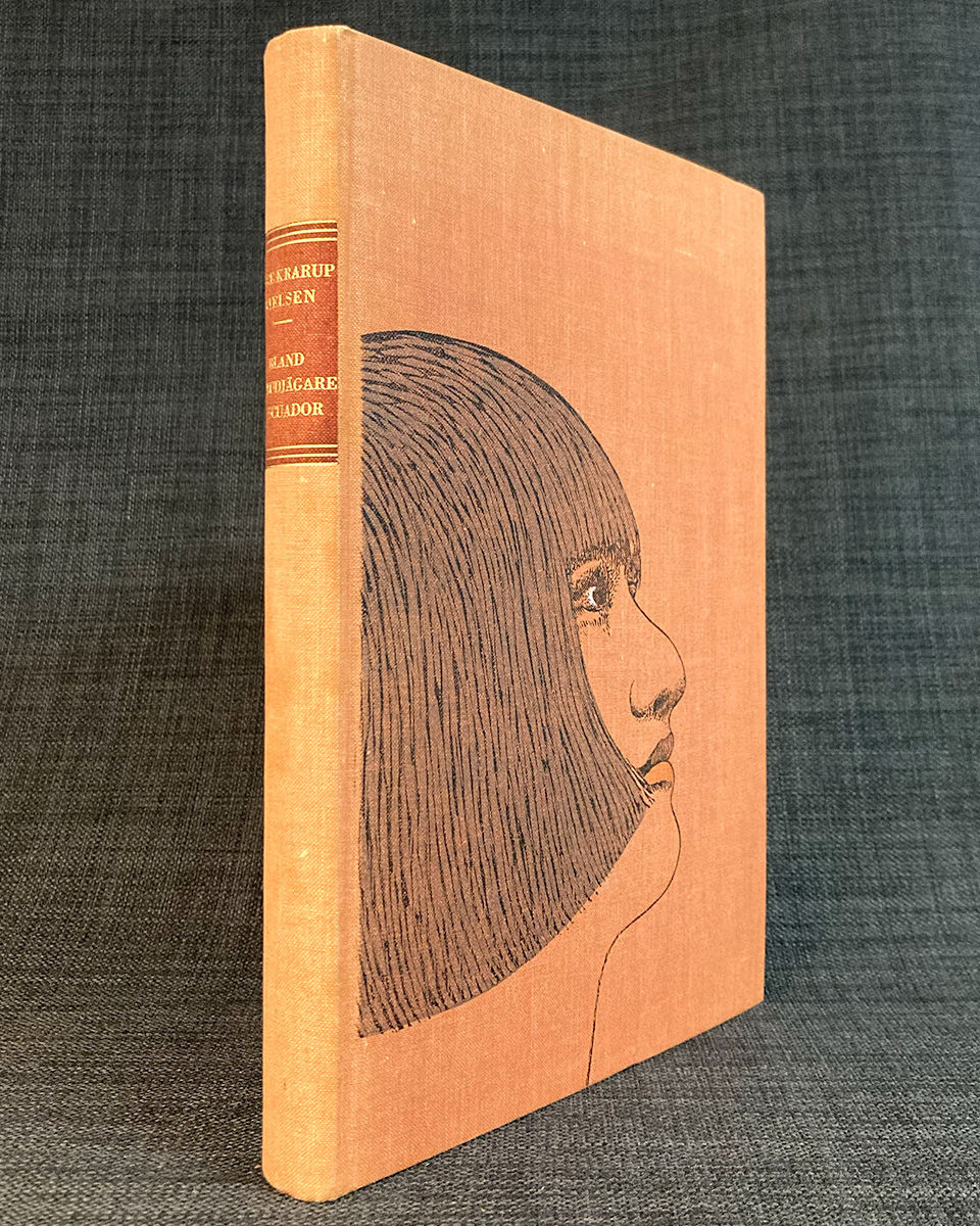 Innehåll: "'Det yppar sig alltid något'", "Guayaquil", "I sicksack upp över 'Djävulens näsa'", "Staden mittibland tjugo vulkaner", "Karnevalsdagar i Quito", "En landsman från urskogen", "Marknaden i Otavala", "Djungelfärden förberedes", "Konserver och guldsand", "Lilla Carmen hjälper mig", "Genom Pastzadalen till orienten", "'Djungelhotell Rio Negro'", "Vi lämnar civilisationen", "Orientens djungel sluter sig om oss", "Mötet med Sevedro", "Ett budskap vid lägerelden", "Den första dagsmarschen", "Indianer och missionärer", "Medan kvällspipan tändes, cikadorna sjunga och Henry berättar", "I kanot genom Pindoflodens farliga forsar", "Vampyrer, strömvirvlar och giftiga ormar", "Djupt inne i urskogen", "Vårt första möte med Jibroindianerna", "Utmed huvudjägarnas stigar", "I hövdingen Anancs hus", "Vardagsliv och festplaner", "'Den lilla jordnöten' och hennes medsystrar", "Blåsrör och pilgift", "Konsten att krympa huvuden", "Vad medicinmannen berättade", "Hövdingen Ananc talar allvarsord", "På jakt med Jiberoindianerna", "Den stora chontafesten", "Malört i glädjebägaren", "Medan festtrummorna larma", "Festrus och krigshumör", "Natemarusets lyckliga land", "Uppbrott", "Avskedstimmen slår" samt "Farväl, orient!" - - - "Among Head Hunters in Ecuador", in Swedish, illustrated with plates and map, publisher's cloth, fine. - - - [Contents (NB in Swedish): "'Something always turns up'", "Guayaquil", "Zigzagging up over the 'Devil's Nose'", "The city amidst twenty volcanoes", "Carnival days in Quito", "A countryman from the jungle", "The market in Otavala", "Preparing for the jungle trip", "Canned food and golden sand", "Little Carmen helps me", "Through the Pastza Valley to the Orient", "'Jungle Hotel Rio Negro'", "We leave civilization", "The jungle of the Orient closes in on us", "The meeting with Sevedro", "A message by the campfire", "The first day's march", "Indians and missionaries", "While the evening pipe is lit, the cicadas sing and Henry tells", "In a canoe through the dangerous rapids of the Pindo River", "Vampires, whirlpools and poisonous snakes", "Deep in the jungle", "Our first meeting with the Jibro Indians", "Along the paths of the headhunters", "In the house of Chief Ananc", "Everyday life and party plans", "'The little peanut' and her sisters", "Blowpipe and poison arrow", "The art of shrinking heads", "What the medicine man told me", "Chief Ananc speaks serious words", "On the hunt with the Jibero Indians", "The great chonta feast", "Wormwood in the cup of joy", "While the party drums are ringing", "Festival excitement and war mood", "The happy land of Natemaruset", "Breaking up", "The farewell hour strikes" and "Farewell, Orient!"]