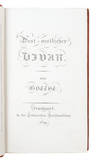 Kjøbenhavn, Reitzel, 1845. Large 8vo. (8), 383 pp. An extraordinary copy printed on very heavy vellum-paper and bound in the mid-20th century in an elegant black half Morocco binding with single gilt lines to boards; double gilt lines and Gothic gilt lettering to spine (bound by Agnete With). Top edge gilt. A bit of brownspotting throughout. With the bookplate of Henning Kehler to inside of front board and with neat pencil annotations to back free end-paper describing the history of the copy. With a handwritten correction on p. 47. Kierkegaard's own copy of the pivotal sequel to his main work Either-Or, one of two copies printed on special paper, with Kierkegaard's own handwritten correction on p. 47. In Either-Or, Kierkegaard had presented the first two stages, the aesthetic and the ethical. In Stages on Life's Way, he continues his work on these stages and moves on to present also the religious stage, which occupies approximately two thirds of the work. The religious stage is that in which man attains a personal relationship with God and that in which man only truly begins to exist, the aesthetic and ethical stages being inadequate. It is in this foundational work, in the religious stage, that Kierkegaard first properly describes what is now known as the "Leap of Faith" (in fact a "leap to faith"), namely the leap that involves willing and belief instead of reason and knowledge, the leap that you take in order to connect to God and which requires that which Kierkegaard calls "the suspension of the ethical". Undoubtedly among Kierkegaard's most brilliant literary achievements, Stages on Life's Way is written in the form of different viewpoints of Kierkegaard's many pseudonymous characters. We have both Hilarius Bookbinder, who by chance has come into possession of the documents presented in the work and has prepared them for printing. We have the famous banquet scene, which mirrors Plato's Symposium, described by William Afham, and in which the three aesthetics participate: Johannes the Seducer, Victor Eremita, and Constatin Constantius. We have Judge William's discourse in praise of marriage, and we have the diary, discovered by Frater Taciturnus, of a young man, who was deeply in love but felt compelled to break off his engagement. This story in form of a diary is the closest one comes to a description of Kierkegaard's own love story, his relationship to Regine. The diary describes an engagement that has lasted for six months; it alternates between the morning notes that recall the engagement and the midnight notes that put it all in perspective. The work closes with a letter to the reader from Taciturnus on the three "existence-spheres" represented by the three parts of the book. Stages on Life's Way is one of Kierkegaard's most important works. Not only does it sum up and explain some of the most important themes of Kierkegaard's previous works, utilizing the characters and pseudonymous authors of the earlier works to do so; it goes beyond these foundational themes, introduces the religious stage, and points to the further development of the central themes in Kierkegaard's philosophy, most of which are only fully developed in Concluding Unscientific Postscript. Written under a pseudonym and without Kierkegaard's name appearing as publisher or indeed anything else, he was unable to give away presentation-copies of the work (due to his own rigid set of rules for his presentation-copies). Thus, not a single presentation copy of the work exists. A single copy of the book was in the auction catalogue of his book collection after his death. In Rohde's edition of the auction-record, this copy and its recent faith is thoroughly described. Like Repetition, Prefaces, and his other seven pseudonymous works, Stages on Life's Way was printed in two copies each on vellum-paper and bound in special bindings, one for Regine, one for Kierkegaard himself. 24 years ago, three of these books surfaced, at an auction in 2002, namely Either-Or, Repetition, and Prefaces, all being the copies Kierkegaard had bound for Regine. Before that, only one single copy of one of these eight titles for Kierkegaard himself or for Regine were known (namely Kierkegaard's own copy of Either-Or, which is in the Danish Royal Library). Seven of the books, Kierkegaard's own copies, were listed in the auction catalogue after his death, but apart from the mentioned copy of Either-Or in the Royal Library, the others had not been found. Kierkegaard's wildly famous love story and failed engagement to Regine Olsen plays a pivotal role throughout Kierkegaard's entire life and work. It all begins in 1837, when Kierkegaard meets the lovely young girl Regine Olsen at a visit to the widowed Cathrine Rørdam. Three years later, in September 1840, after having corresponded frequently with her and visited her on numerous occasions, Kierkegaard decides to ask for her hand in marriage. She and her family accept, but the following day, Kierkegaard regrets his decision and ends up finally breaking off the engagement in October 1841. Disregarding the scandal, the heartbreak (his own included), and the numerous pleas from family members and friends alike, Kierkegaard's tortured soul, still searching for God and for the meaning of faith, cannot continue living with the promise of marriage. Later the same month, he flees Copenhagen and the scandal surrounding the broken engagement. He leaves for Berlin, the first of his four stays there, clearly tortured by his decision, but also intent on not being able to go through with the engagement. As is evident from his posthumously published Papers, Kierkegaard's only way out of the relationship was to play a charming, but cold, villain, a charlatan, not betraying his inner thoughts and feelings. Despite the brevity of the engagement, it has gone down in history as one of the most significant in the entire history of modern thought. It is a real-life Werther-story with the father of Existentialism as the