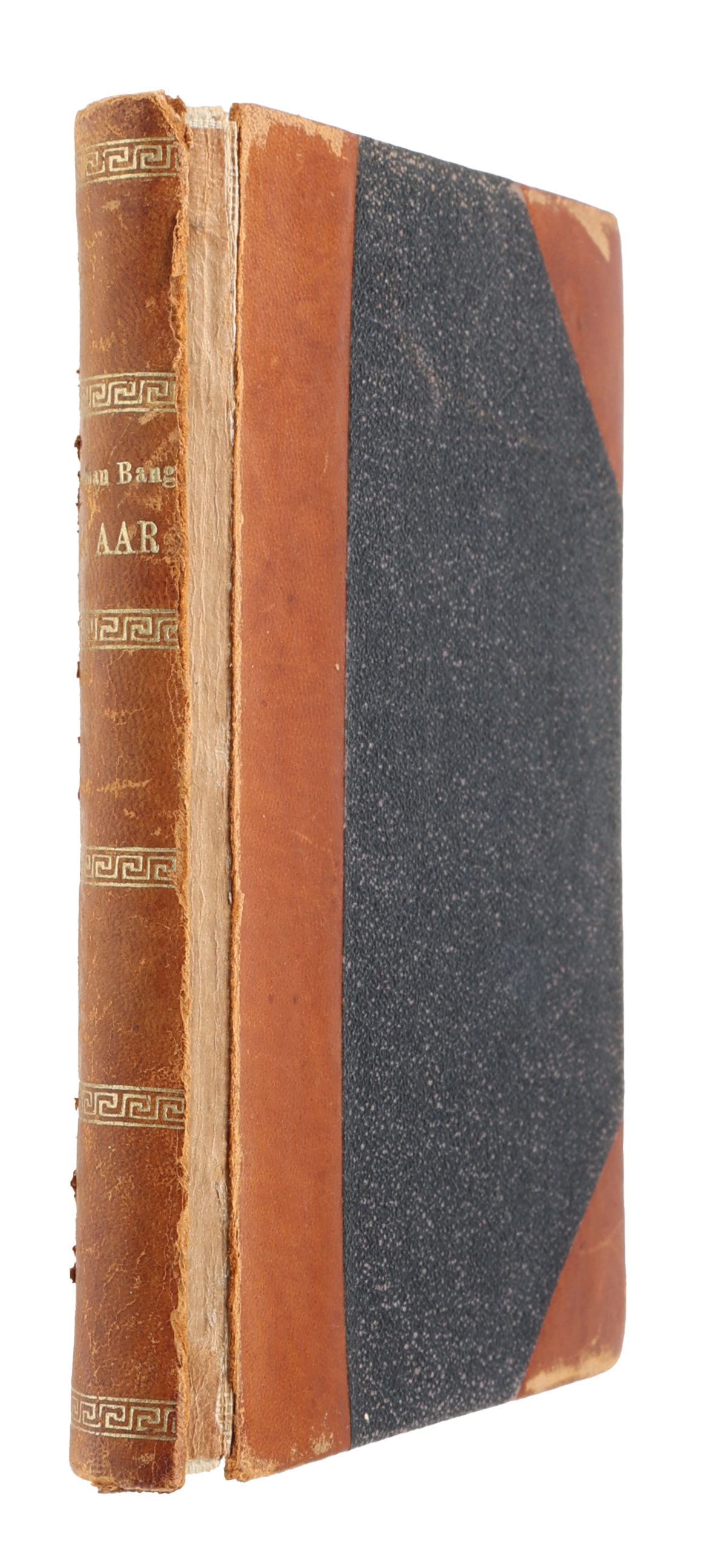 København, I. H. Schubothe, 1891. 8vo. I et samtidigt halvlæderbind med forfatterens egenhændige dedikation på titelblad: "Den, som forstaar at spotte sig selv, burde slaa Spottens Vaaben af de andres Hænder / 11.7.1905 / Herman Bang.". Forreste fals gået op, indvendig ren og pæn. XVIII,(2),275,(1) pp. Dedikationseksemplar af Bangs "Ti Aar", hans reflektioner over hans første ti år som forfatter. "Bang tilbragte sommermånederne 1905 på Marienlyst ved Helsingør. Det er nærliggende at tro, at han har skænket denne bog med inskription til den velgørenhedsbazar, som en kreds af damer afholdt dér den 11.7.1905, bistået af Herman Bang. Bogen har formodentlig været en af gevinsterne i et lotteri denne dag. Overskuddet skulle ifølge en samtidig omtale i Helsingør Dagblad deles mellem ”Børnenes Kontor” i København og menighedsplejen i Helsingør." (Posselt, nr. 62). Herring, p. 87.Posselt, Bibliofiler 21, Paul Sandberg samling af Herman Bang-dedikationer, nr. 62