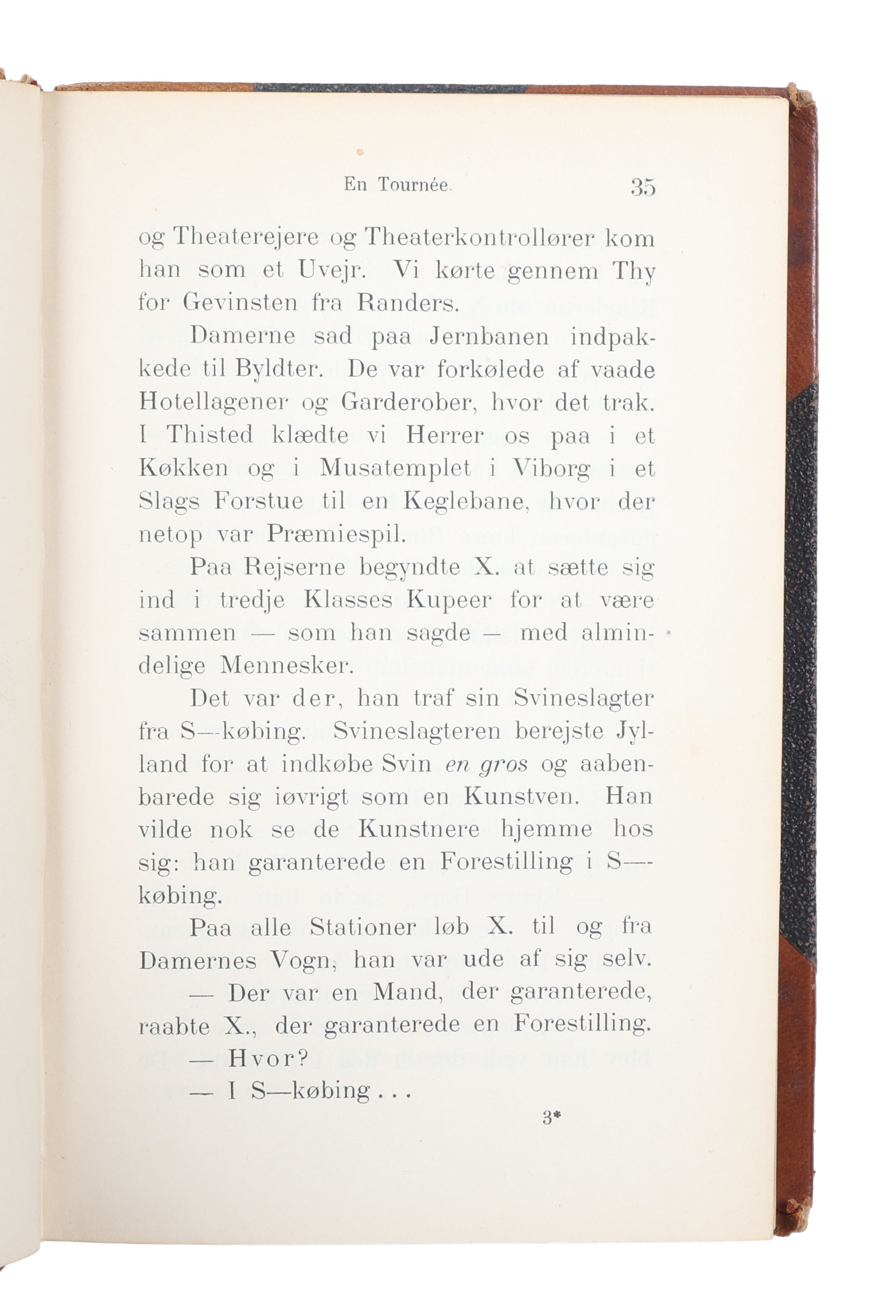 København, I. H. Schubothe, 1891. 8vo. I et samtidigt halvlæderbind med forfatterens egenhændige dedikation på titelblad: "Den, som forstaar at spotte sig selv, burde slaa Spottens Vaaben af de andres Hænder / 11.7.1905 / Herman Bang.". Forreste fals gået op, indvendig ren og pæn. XVIII,(2),275,(1) pp.