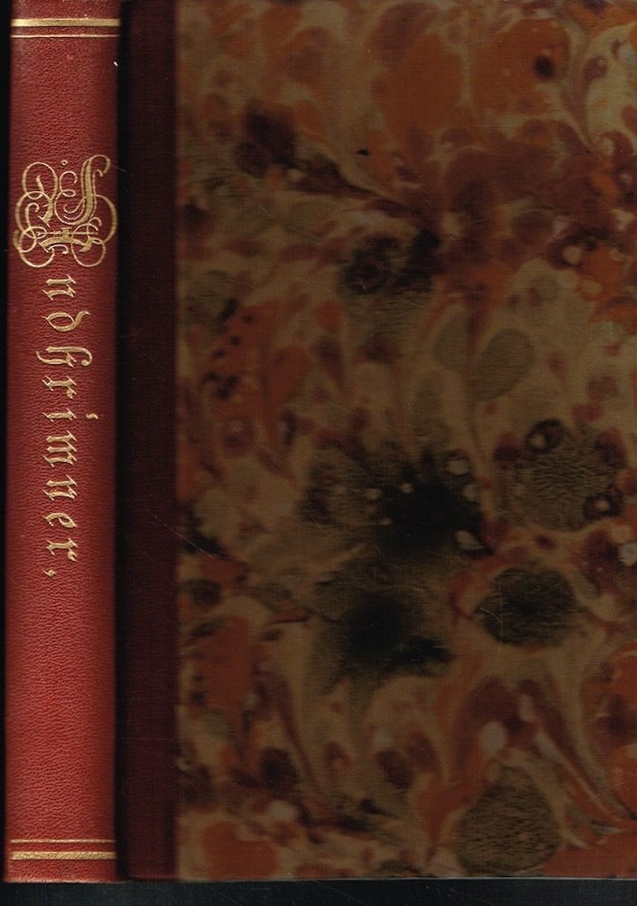Oslo, 1957. Liten 4to. 3 x 208 sp. bundet i et originalt skinnbind med marmorert overtrekkspapir. Illustrert. Litt bleket på ryggen, ellers meget pen.. Bøker. . Facsimile av Andhrimner fra 1851. Nr. 82 av 150 nummererte eks. Andhrimner var et satirisk og litterært ukeblad, utgitt anonymt av Paul Botten-Hansen, Henrik Ibsen og Aasmund Olavsson Vinje. Det var i dette bladet at Ibsen under pseudonymet Brynjolf Bjarme fikk trykt sine første dikt. Ibsen bidro også med enkelte av bladets tegninger. Av Vinje finner vi flere skjønnlitterære kritikker og Botten-Hansen offentliggjorde her sitt dramatiske eventyrdikt «Huldrebryllupet», betegnet som en modell for Ibsens Peer Gynt.
