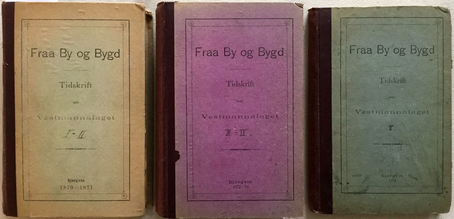 Fraa By og Bygd 1870-1874. Tidsskrift aat Vestmannalaget i tre band