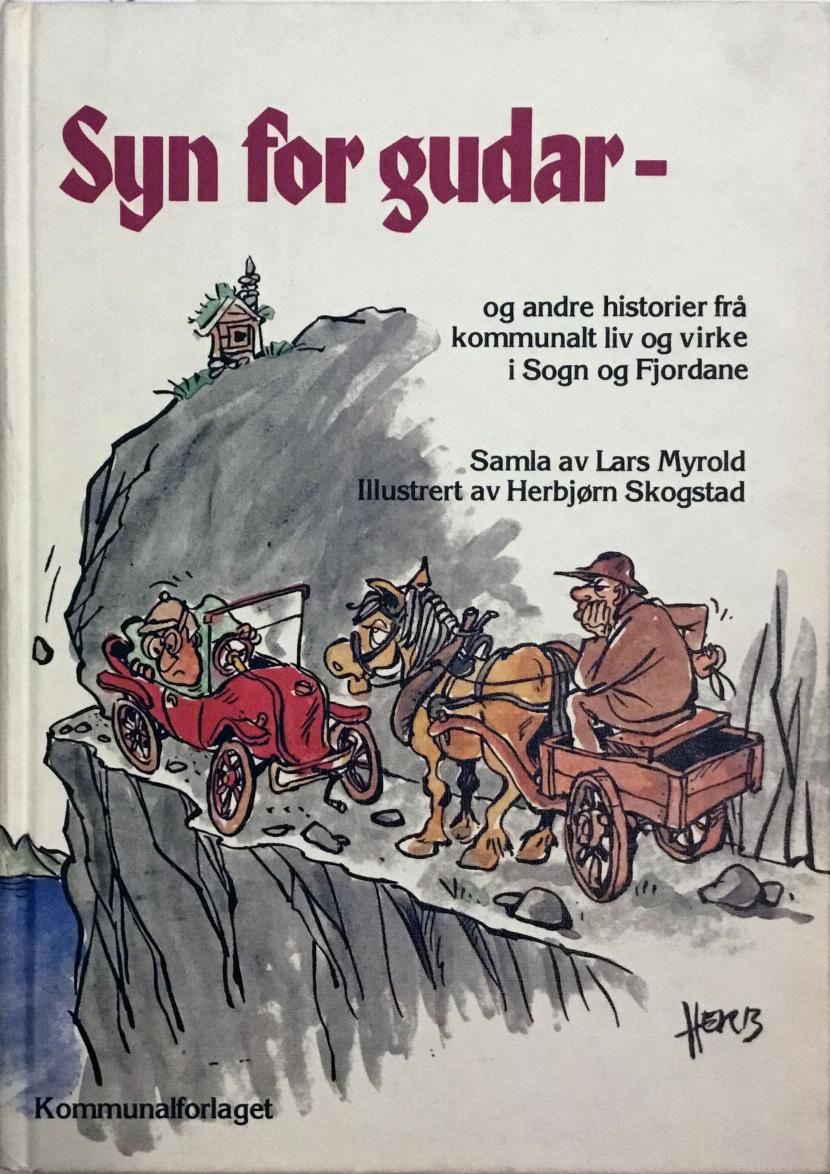 Syn for gudar og andre historier frå kommunalt liv og virke i Sogn og Fjordane. Samla av Lars Myrvold. Illustrert av Herbjørn Skogstad.