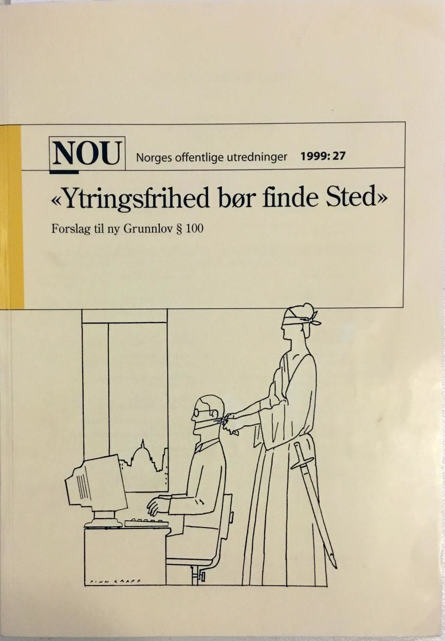 «Ytringsfrihet bør finde sted» Forslag til ny grunnlov § 100. Utredning fra en kommisjon oppnevnt ved Kongelig resolusjon 26. august 1996. Avgitt til Justis- politidepartementet 22. september 1999