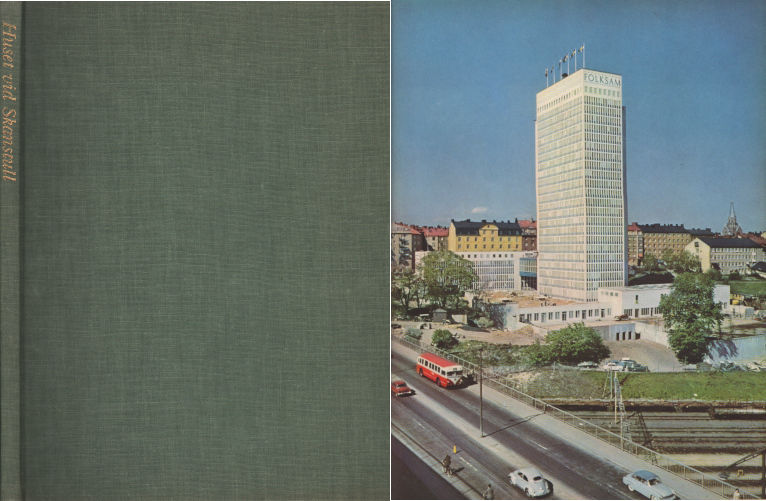 En titt på vårt grannskaps historia, text av Stieg Trenter och illustrationer av Björn Jonson. Så byggde vi Folksamhuset, en bildberättelse av K. W. Gullers (fotoillustrerad delvis i färg). Stockholm: Rabén & Sjögren, 1960. 99, (3) s. 34,5x26,5 cm. Inbunden i förlagets pappband. Utan skyddsomslag. För- och eftersättsbladen tryckta med kartor.