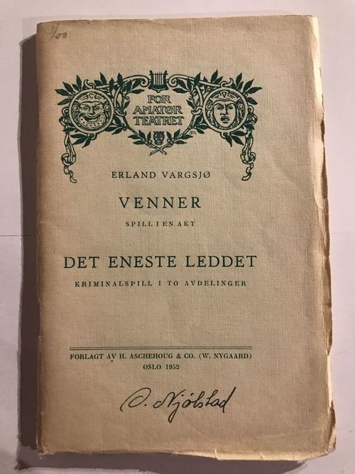 Oslo 1952. Liten 8vo. 55 s. Hefta, originalt omslag. To namnetrekk.