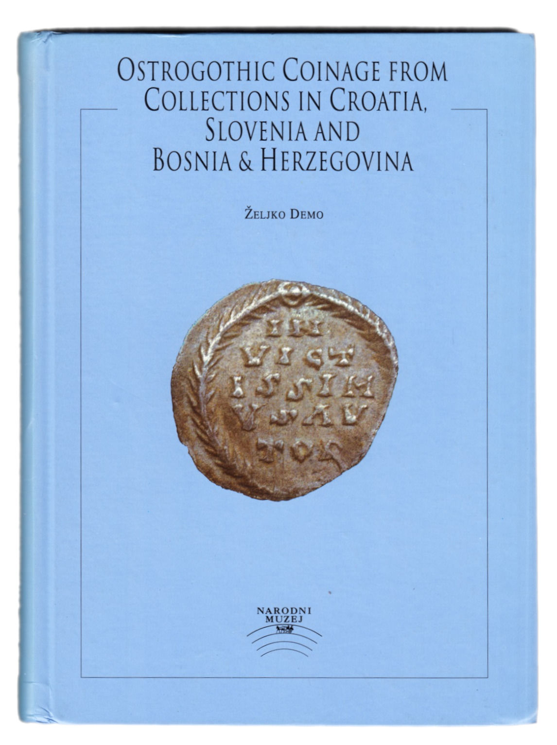 Ljubljana, Narodni Muzej, 1994. 8vo. xv,+ (blank),+ 323 pp. Illustrated. Publ. boards. Owner’s signature of H. Klackenberg. Ostrogothic coins from Theoderic to Totila.