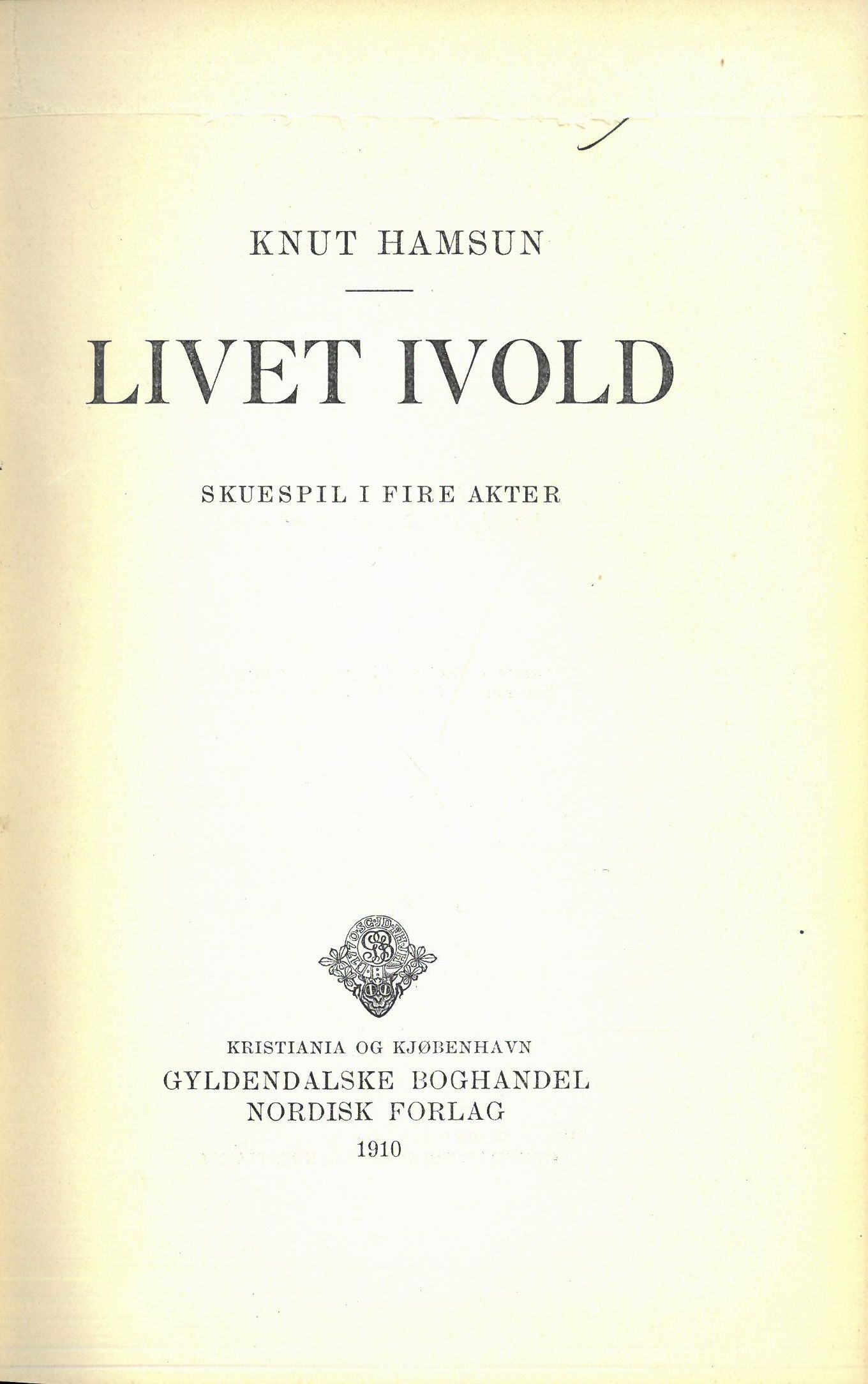Kbh., 1903. 8vo. Orig. omsl. 183 s.. (Gyldendalske Boghandels Forlag (F. Hegel & Søn)) Norsk. Løs. Deler av ryggstripen borte.