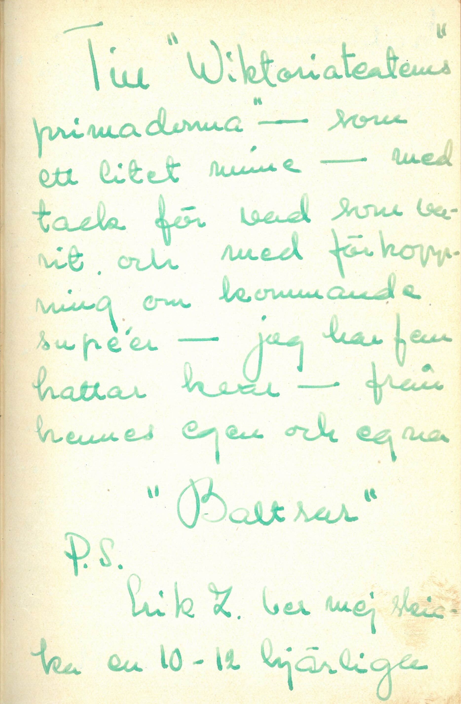 Med en firesiders dedikasjon til Lillebil Ibsen.