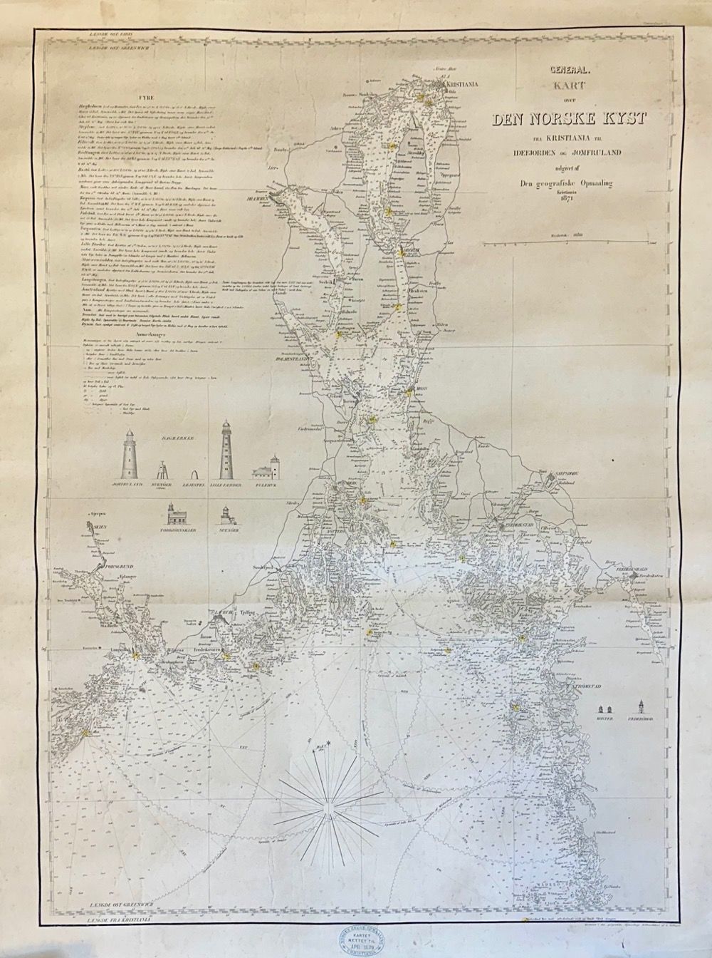 General-kart over den norske kyst fra Kristiania til Iddefjorden og Jomfruland udgivet af Den geografiske Opmaaling Kristiania 1871.