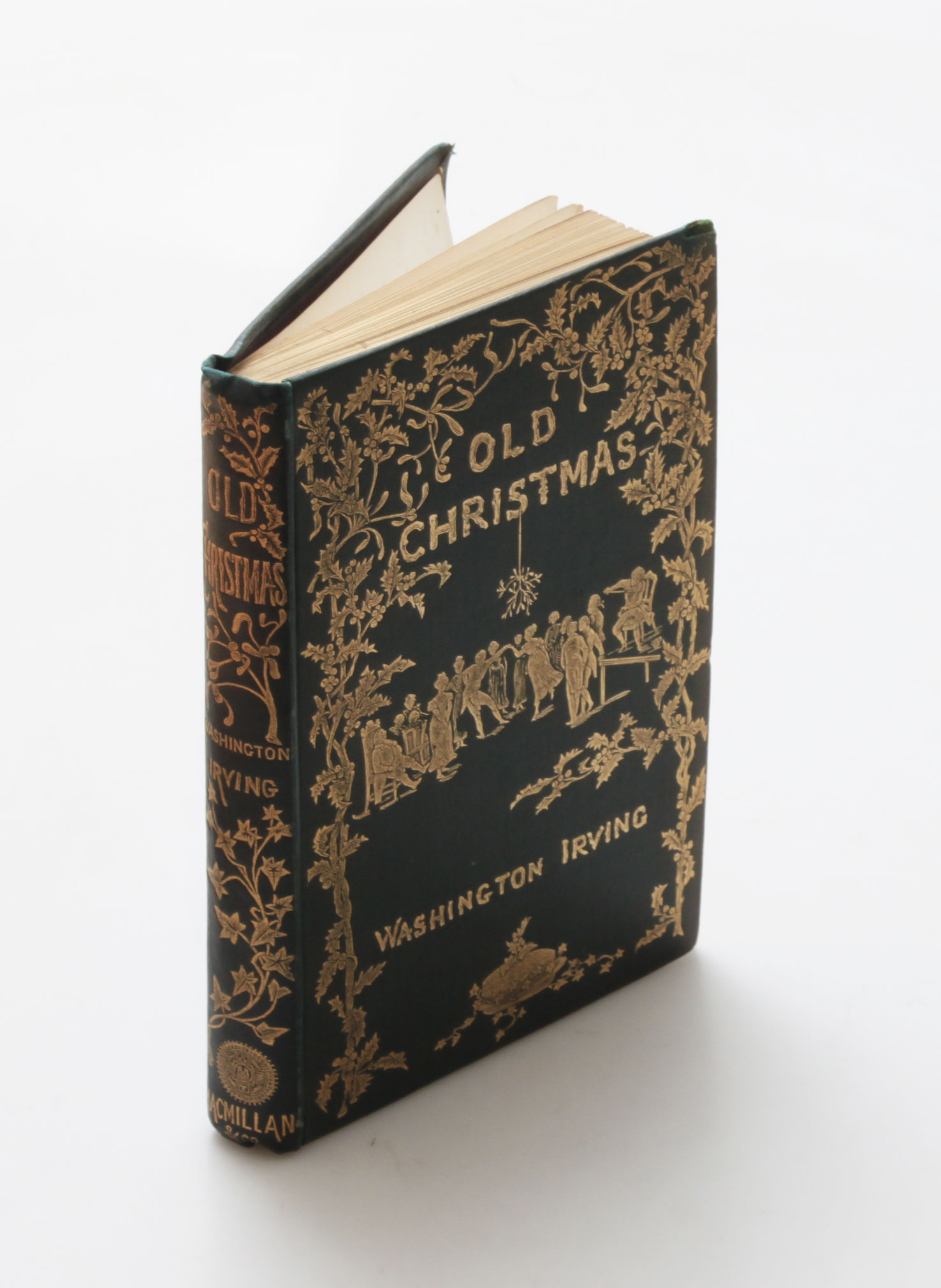 London: Macmillan & Co., 1882. Original publisher's green cloth hardcover, spines and front covers lettered and decorated in gilt, brown endpapers, all edges gilt. Frontispieces with tissue guard, illustrated title pages printed in grey and green, 7 engraved plates, 96 b/w text illustrations, all engraved by J. D. Cooper after Randolph Caldecott. Inner hinges a bit week, but holding firm. Previous owners fine bookplate made by Povl Christensen (Else Fahnøe). Overall a very well preserved and very attractive copy. ""Old Christmas" (First published in a separately 1876 and identical to this copy) is a collection of five Christmas "sketches" by Washington Irving from his famous Sketch Book - A beautifully produced Christmas book which captures the essence of a Victorian Christmas. It describes Irving's experiences at the English country estate of Mr. Bracebridge during the "coaching days" of the early 19th century, focusing on the sights, sounds, smells and traditions of "Old" Christmas. In spirit it hearkens back to the Middle Ages -- before the "peasants" had learned to read newspapers or were talking politics at the local pub, when manner lords opened their halls for the local folk to feast in a show of gratitude, under the watchful stare of painted ancient family crusaders and armored statues. This wonderful account has a tangible sense of realism mixed with romanticism and the comforts of tradition.Drawings throughout are by Randolph Caldecott, a prolific and famous children's book artist of the 19th century. The pictures bring the book to life, we see the exact "physiognomy" and "countenance" of the many curious Dickens-like characters, the scenes of feasting and dancing, the old English kitchens, the stage coach, the dress and mannerisms of a "Coachy" - priceless details that effortlessly transport the reader back in time". - Washington Irving, one of the first Americans to achieve international recognition as an author, was born in New York City in 1783. His A History of New York, published in 1809 under the name of Diedrich Knickerbocker, was a satirical history of New York that spanned the years from 1609 to 1664. Under another pseudonym, Geoffrey Crayon, he wrote The Sketch-book, which included essays about English folk customs, essays about the American Indian, and the two American stories for which he is most renowned--"The Legend of Sleepy Hollow" and "Rip Van Winkle." Irving served as a member of the U.S. legation in Spain from 1826 to 1829 and as minister to Spain from 1842 to 1846.