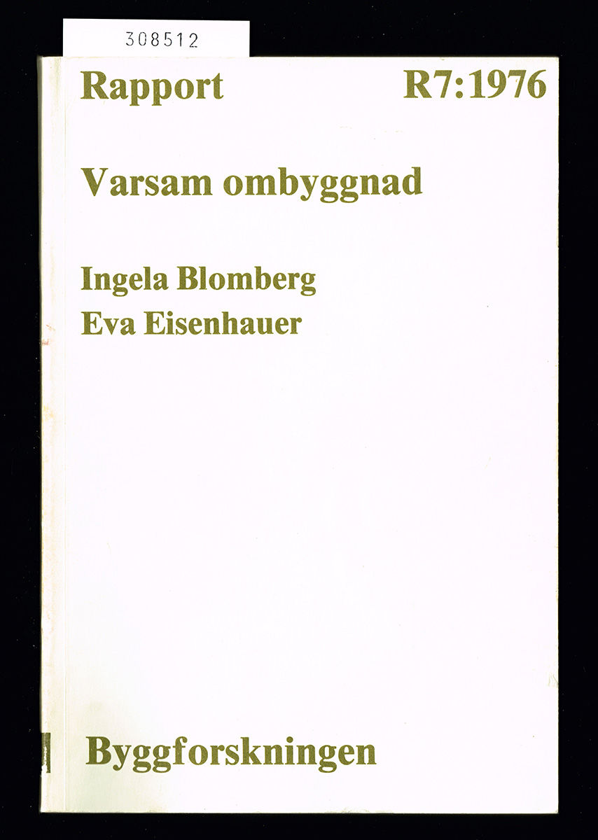 Stockholm, Statens råd för byggnadsforskning / Byggforskningen, 1976. 8:o. 3922 sid. Rikl illustrerad, bl. a. med planer. / In Swedish. Spridlimmad i tr. omslag. Lätta ytliga bruksspår. Gott skick.