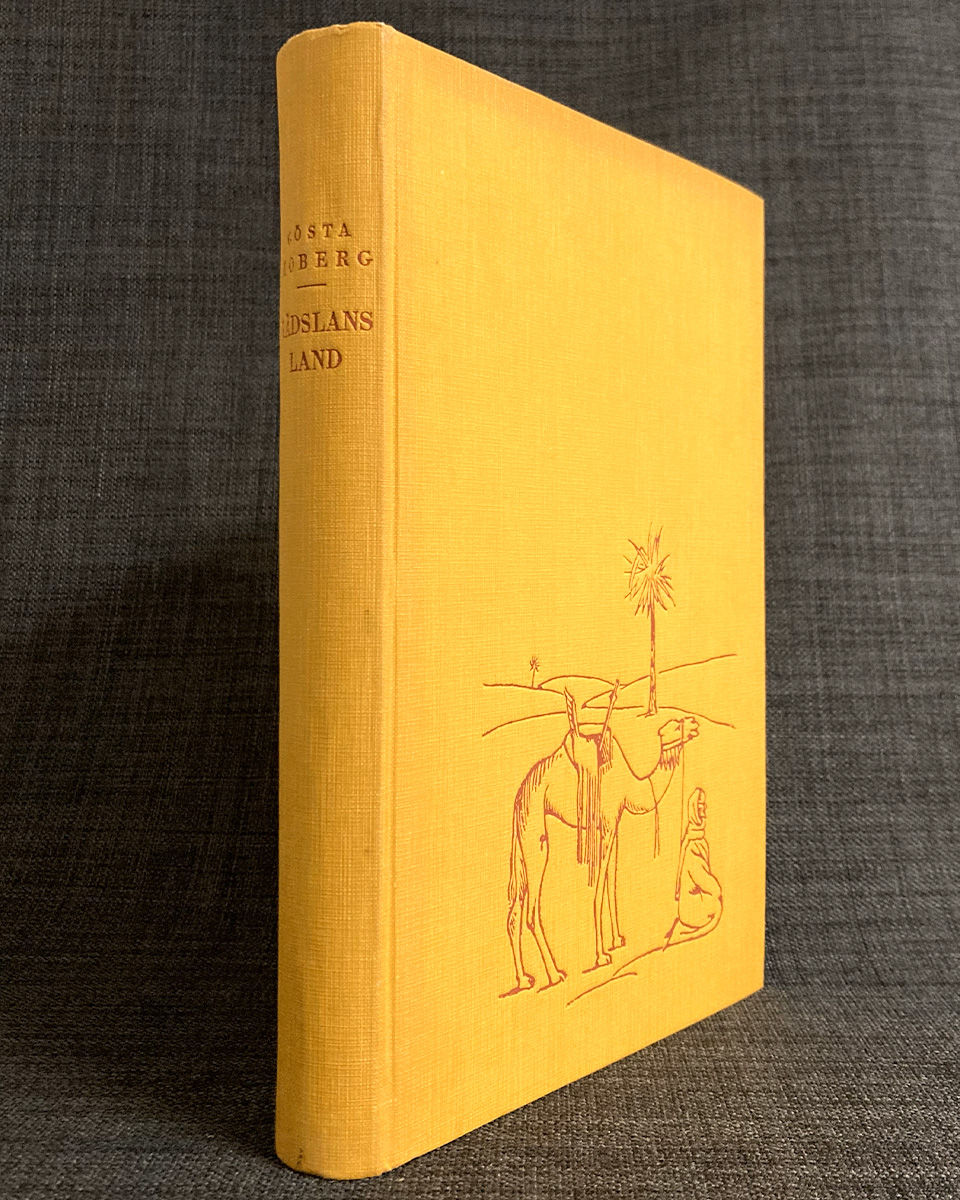 Stockholm, Hugo Gebers förlag (tr. Helsingfors), 1925. 8:o. 240 sid. + utvikbar karta. Illustrerad i texten med fotografier. Trevligt samtida gult klotband, ryggen med brun titeletikett, marmorerade snitt, främre dek. omslaget i färg medbundet. Fint skick. Innehåll: "Från Medelhavets kust till Hoggarbergen", "Hoggarbergen - tuaregernas 'Bled-el-chuf', 'Fasornas land'", "På otrampade stigar. Genom Tanesruft, 'Törstens land', till Sudan". - - - "Through the Deserts of Africa", in Swedish, publisher's yellow cloth, fine. - - - [Contents (NB in Swedish): "From the Mediterranean coast to the Hoggar Mountains", "The Hoggar Mountains - the Tuaregs' 'Bled-el-chuf', 'Land of Horrors'", "On untrodden paths. Through Tanesruft, 'Land of Thirst', to Sudan".]