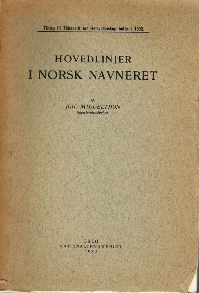 Hovelinjer i norske navneret. Utgit som tillæg til Tidsskrift for Retsvidenskap.