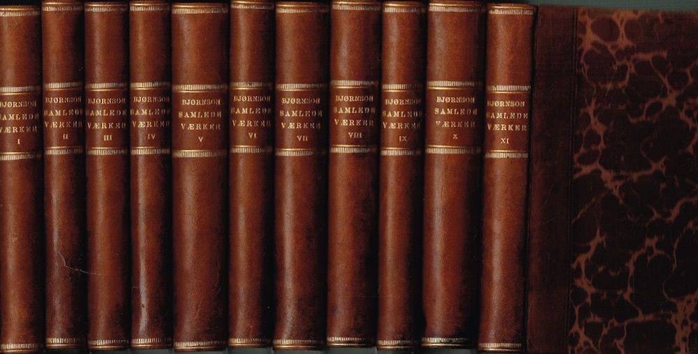 København, 1900-1902. 8vo. Innbundet i elleve brune skinnbind med marmorert overtrekkspapir. Noe falmet på rygg, likevel et pent sett. . (Gyldendalske Boghandels Forlag (F. Hegel & Søn)) 11. .