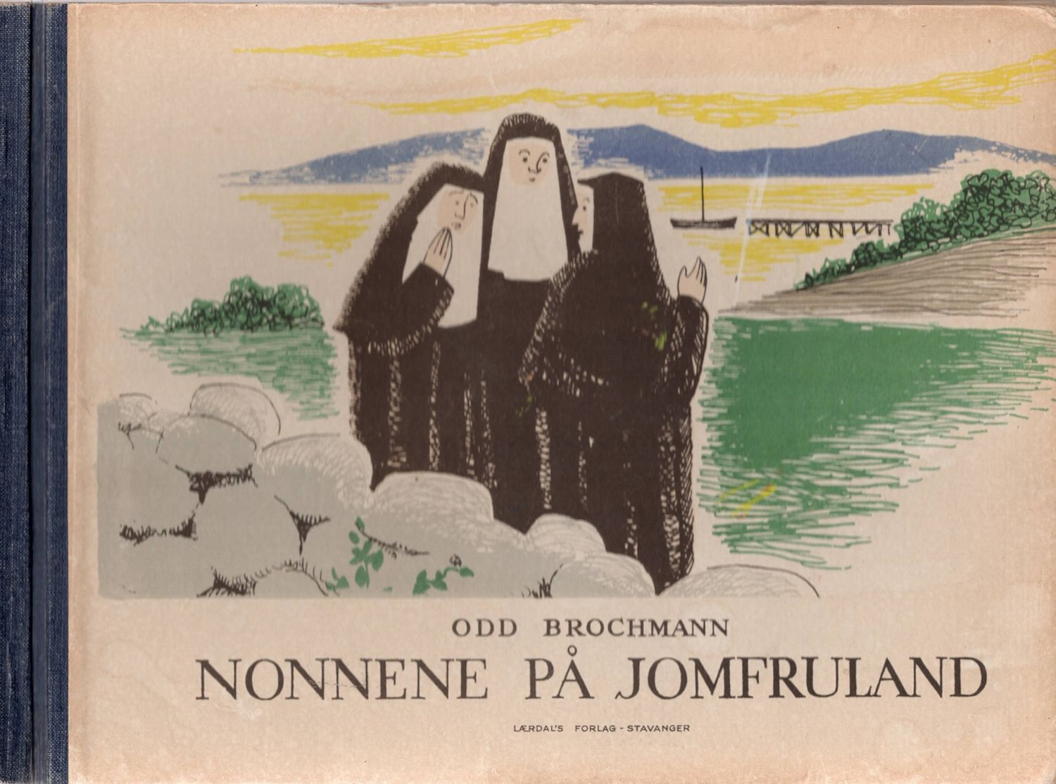 Stavanger, [1947]. Tv4to. Upag. [52 s.] Hels. fargeillustr. av forf. Tittelblad og forperm litt gulnet i kantene. Pen.. (Lærdals forlag). Nonnene har gitt navn til øya.