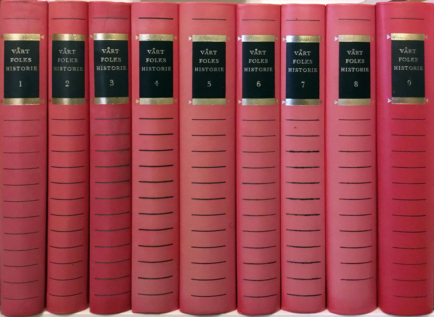Oslo 1962. 8vo. Aschehoug. Illustrert. Raude kunstskinnbind med svarte ryggtittelfelt og gyllen tekst. Eit godt sett