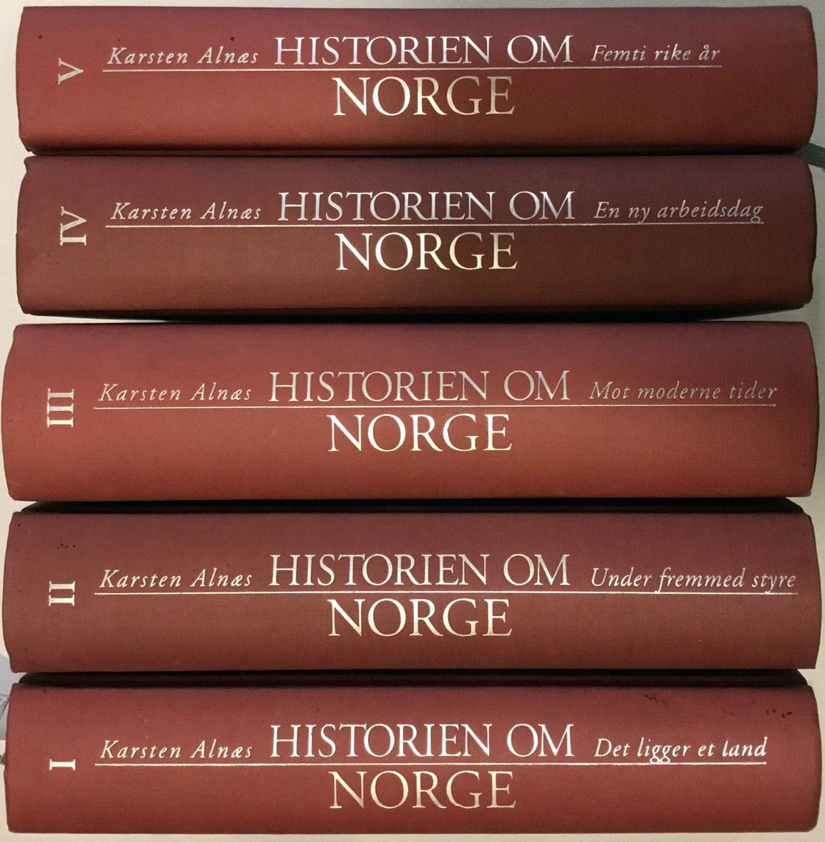 Oslo 1996. Gyldendal. 8vo. 495 + 547 + 683 + 637 + 493 s. Rikt illustrerte. Burgunder originalbind med sølvfarga ryggtitelar. Eit sett i god stand