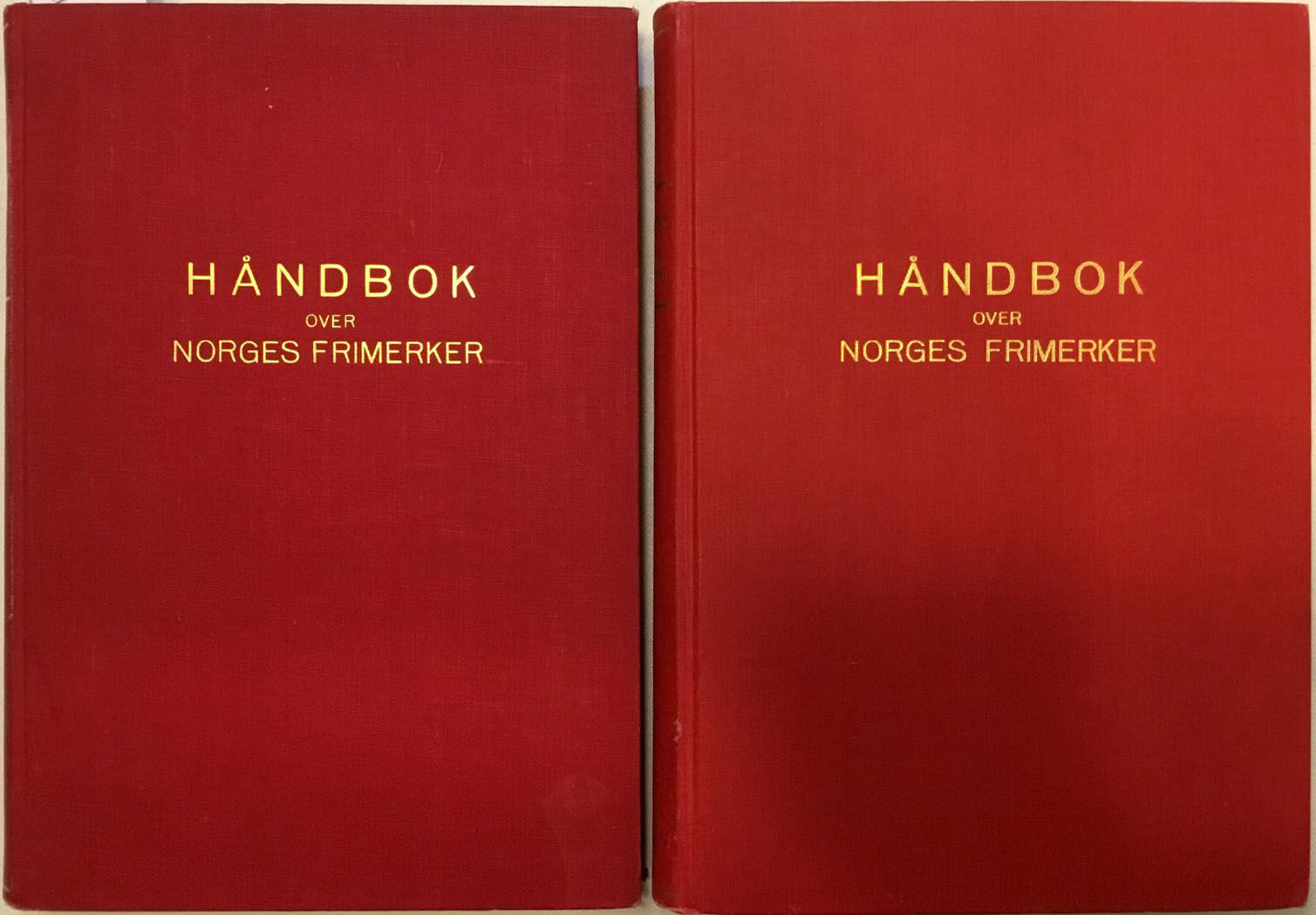 Oslo 1963. Norsk Filatelistforbund. Liten 4to. 312+378 s. Mange ill. Originalbind. Raude sjirtingryggar m. dekorstriper og gyllen tekst. Bruksspor. I god stand