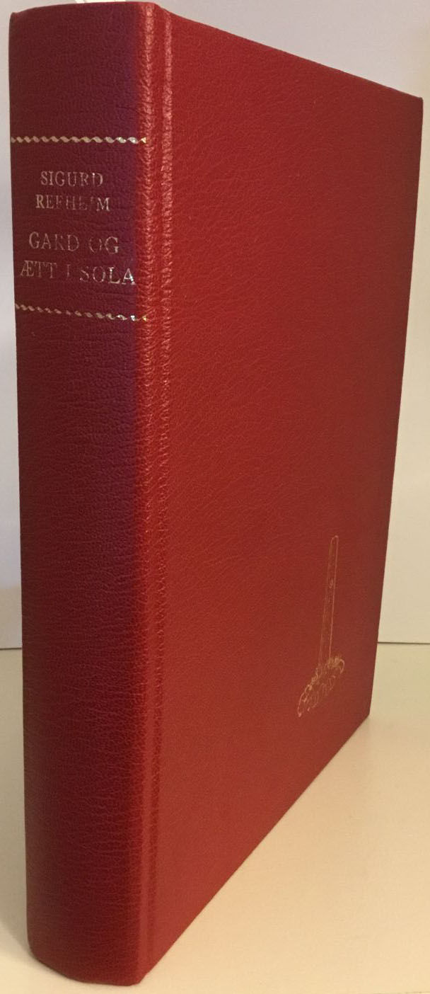 Sola 1974. Utgjevar Sola kommune. Liten 4to. 651 s. Illustrert. Originalt kart følgjer med. Raudt polstra kunstskinnbind med dekor og gyllen ryggtekst. Stempel. Pen