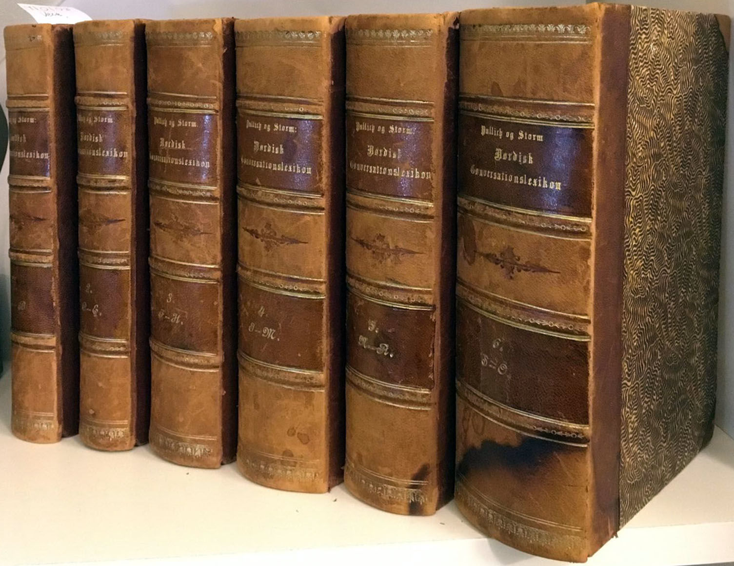Kjøbenhavn 1884. Forlagsbureauet. Stor 8vo. Samtidige skinnryggbind med fire opphøgde band. Eit solid sett i generelt god stand