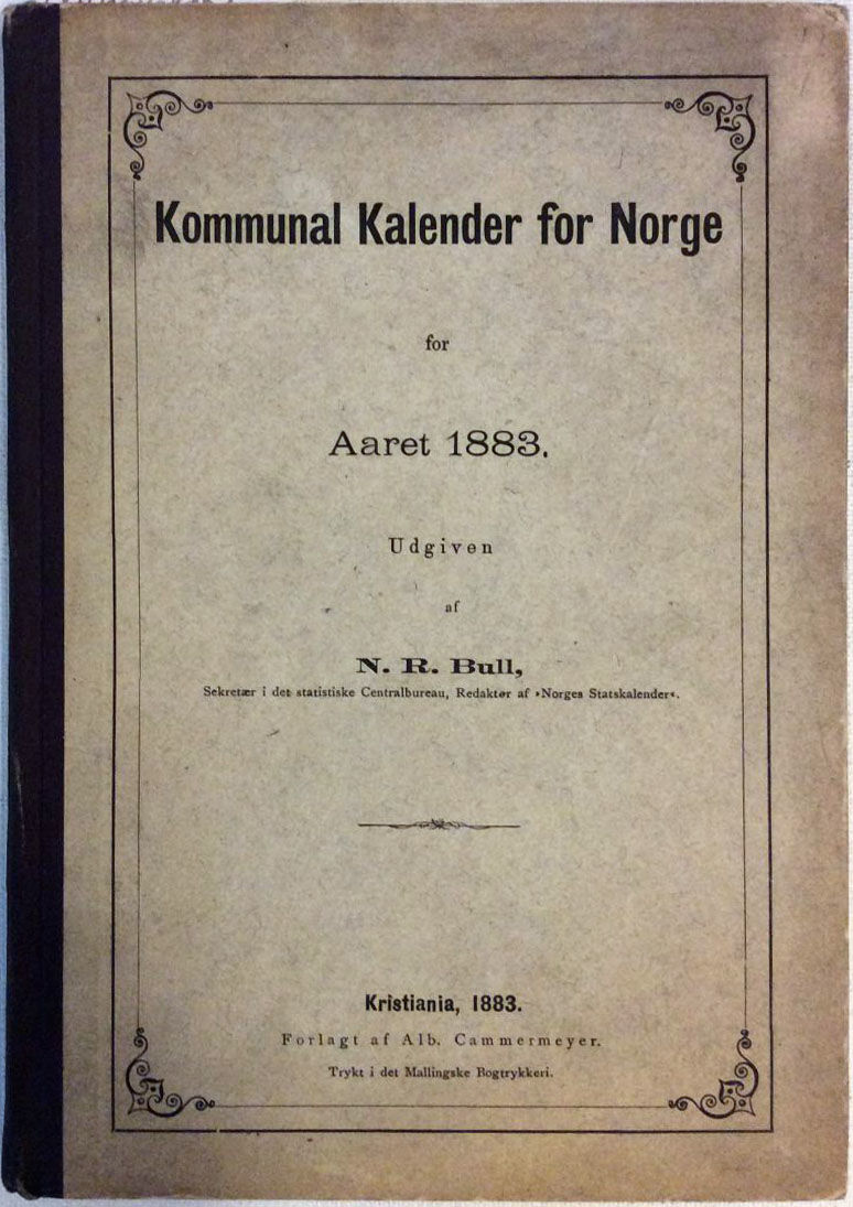 Kommunal Kalender for Norge for Aaret 1883. Udgiven af N. R. Bull, Sekretær i det statistiske Centralbureau, Redaktør af ""Norges Statskalender""