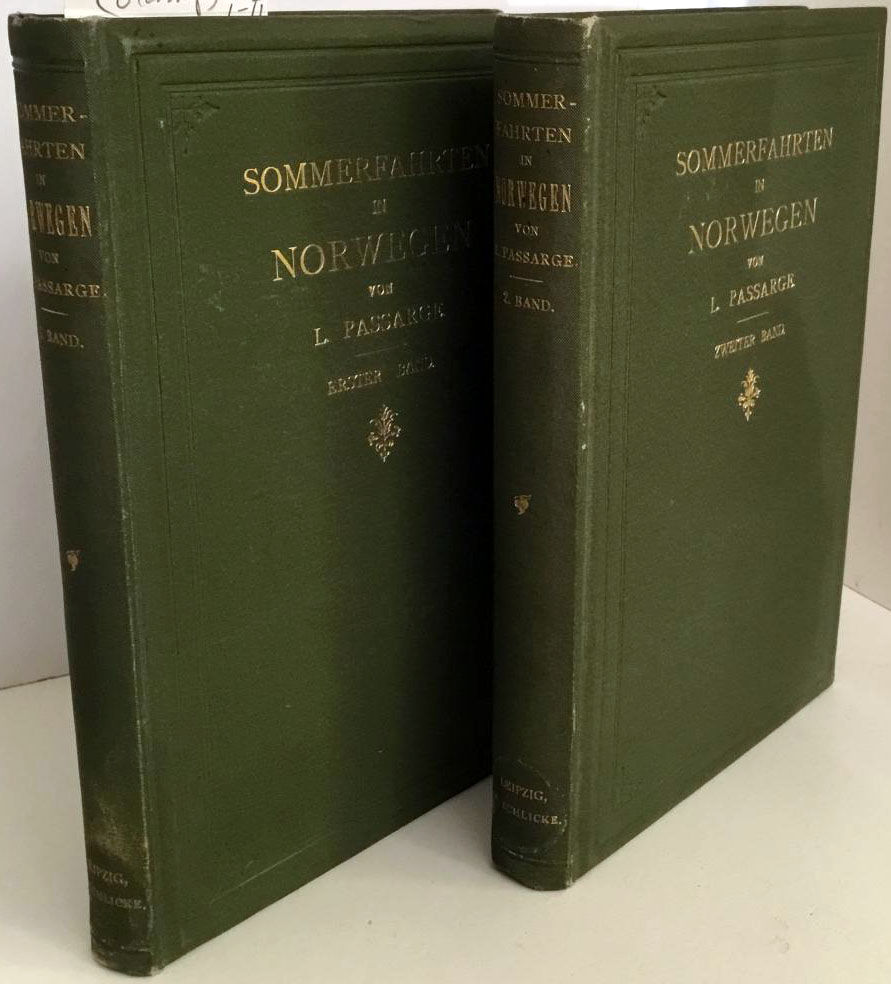1. bind: Von Kopenhagen nach Drontheim. Die Nordfahrt bis Vadsö. 2. bind: Von Drontheim über Molde zum Galdhöpig. In den Verzweigungen der Westfjorde. Jotunheim, Bergen. Der Hardangerfjord. Telemarken. Ludwig (Louis) Passarge, (1825-1912), tysk reiseforfattar, oversettar og dommar