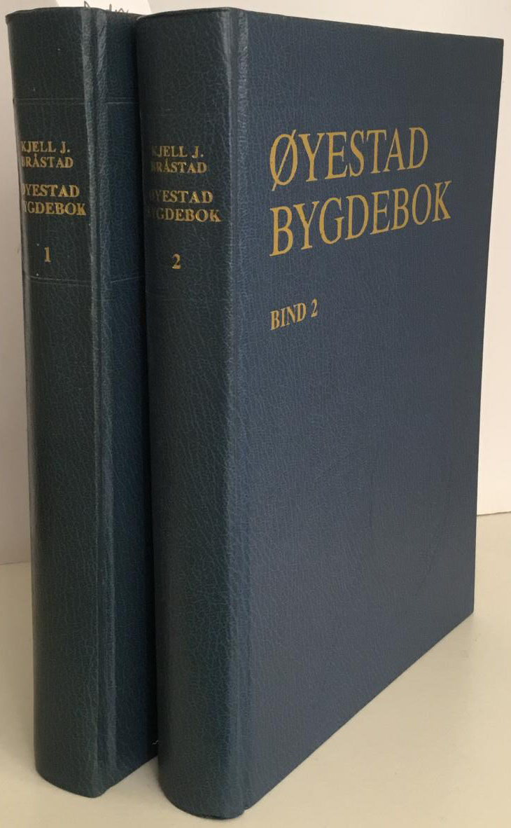 Kragerø 1981. Utgitt av Øyestad kommune. Store 8vo. 442 (+3) + 462 (+1) s. Illustrert. Originale blå kunstskinnbind med gyllen ryggtekst. Eit solid og godt sett