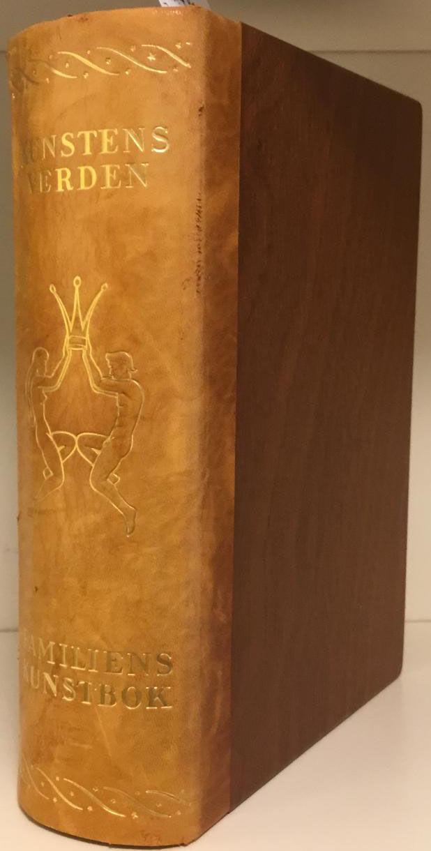 Oslo 1959. Kunstens Verden. Liten 4to. 2144 spalter. Mange ill., litt i fargar. Originalbind. Brun skinnrygg m. dekor og gyllen tekst. Finerpermar. Ex libris. Pen bok