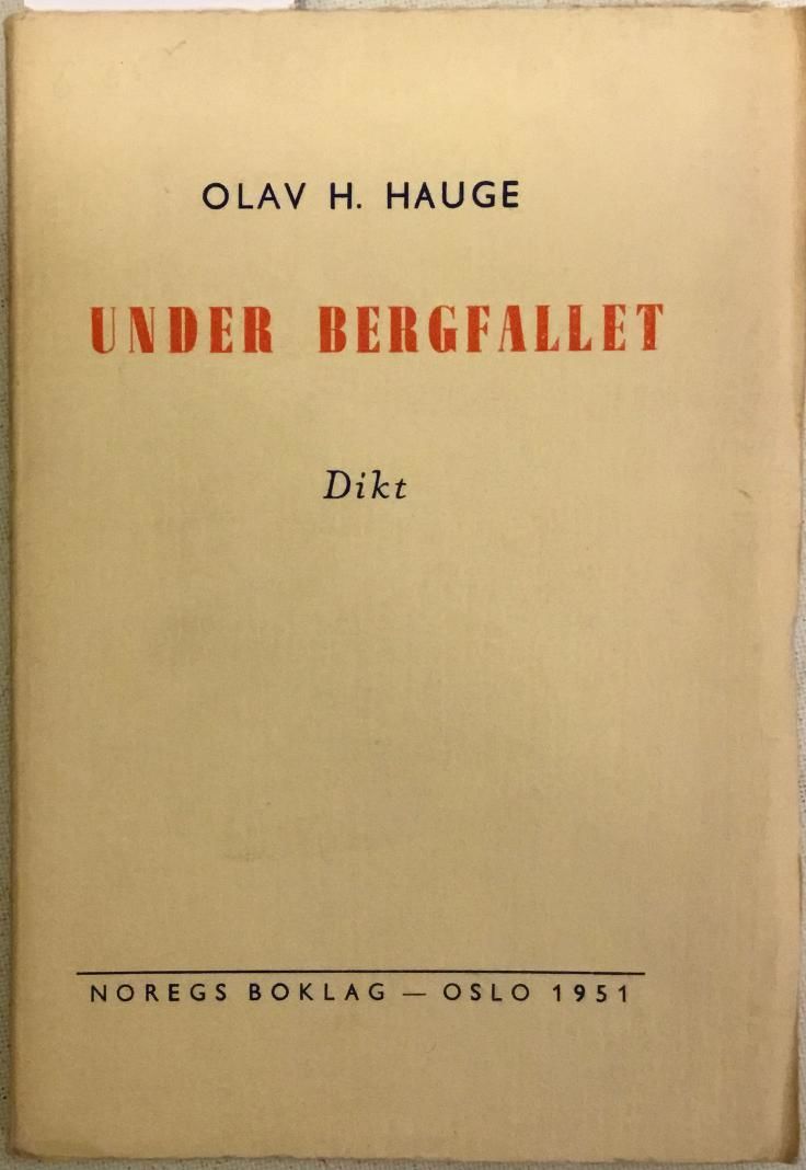 I 1951 kom Under bergfallet, med 47 dikt i tre nummererte bolkar. Blar me igjennom originalutgåva, kjenner me att fleire favorittar. Det fyrste diktet «Din veg», er mykje brukt både med og utan musikk. Omframt at ordet «din» er sperra ut i originalen, så er det heilt identisk med attgjevinga i siste utgåva av «Dikt i samling». Den største kunsten, fulltreffaren, korkje skal eller kan brigdast på! Slik er det med titteldiktet «Under bergfallet». Berre eit lydteikn er sett inn over «e-en» i ordet «lèt»