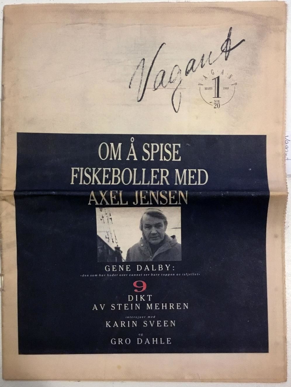 Oslo 1988. Vagant / Institutt for litteraturvitenskap. Tabloidformat, falsa. 36 s. Illustrert. Stifta avis. I plastlomme