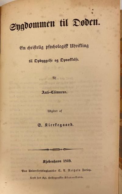 Frygt och baeven. Dialektisk lyrik av Jonannes de silentio. + Sygdommen til døden. En christelig psychologisk udvikling til opbyggelse og opvækkelse. Af Anti-Climacus.