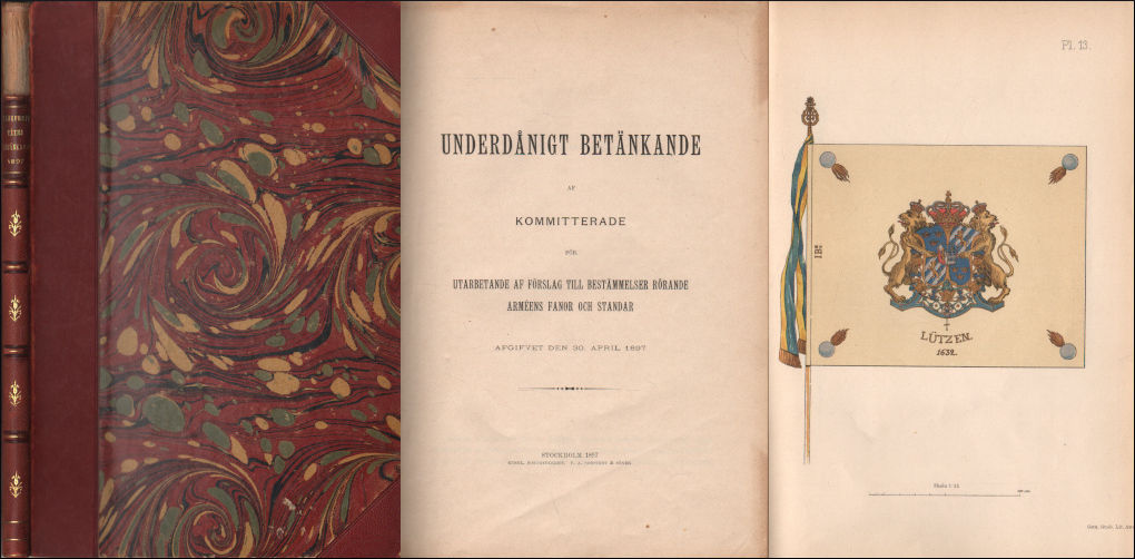 UNDERDÅNIGT BETÄNKANDE af Kommitterade för utarbetande af förslag till bestämmelser rörande arméens fanor och standar, afgifvet den 30 april 1897.