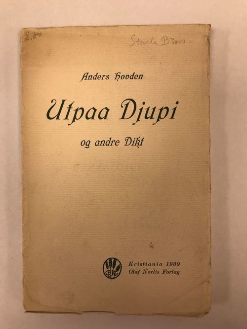 Kristiania, Olaf Norlis Forlag 1909. Liten 8vo. 139, (4) sider. Hefta, originalt omslag. Skade på ryggen. Sprukke i to. Ein brett i nedre hjørne på framomslaget.