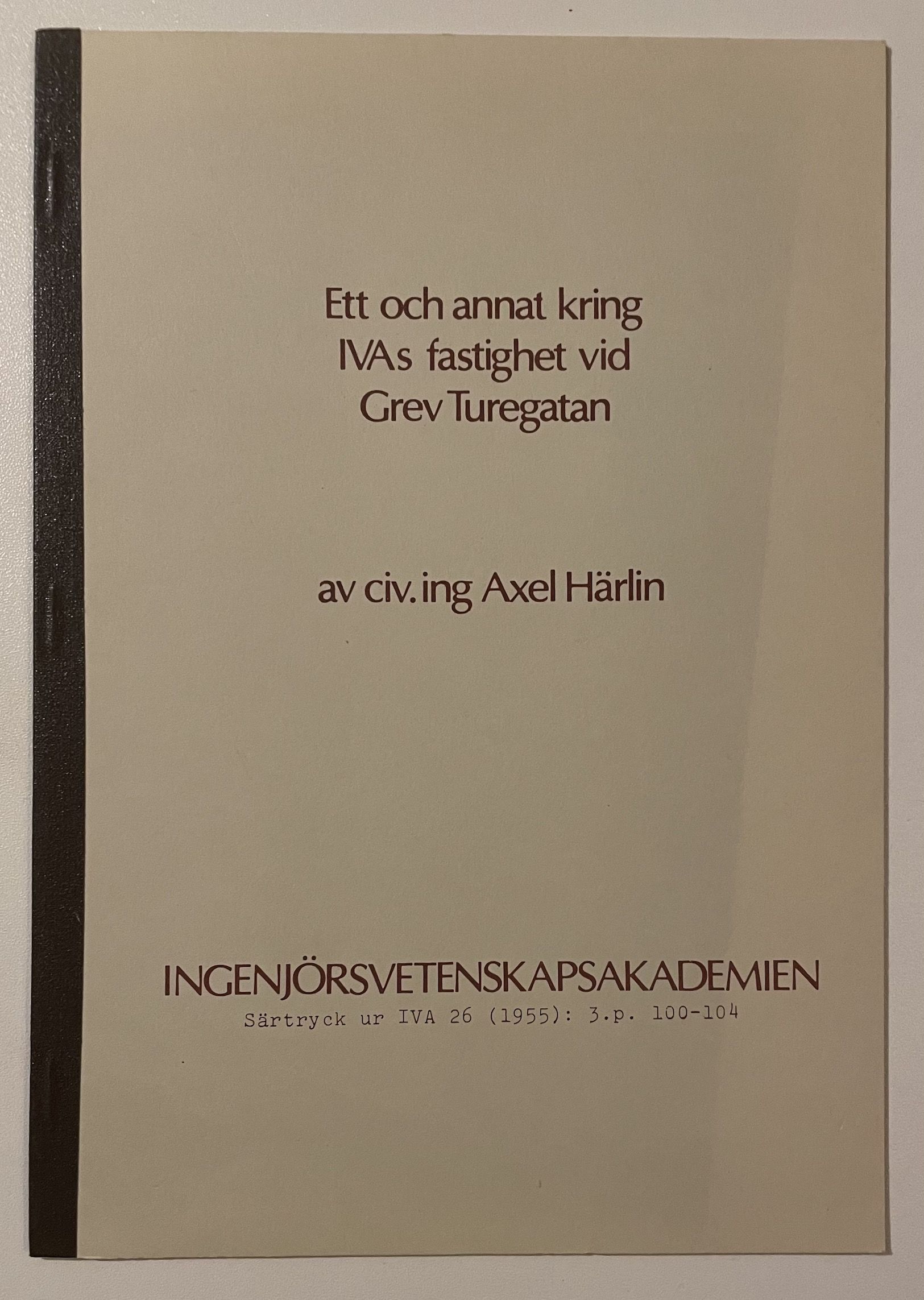 Ett och annat kring IVAs fastighet vid Grev Turegatan.