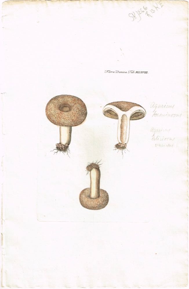 Tab. MLXVIII. Agaricus torminosus (Skjeggriske). Utg. av M. Vahl.