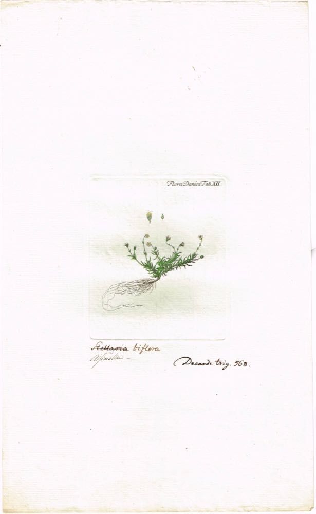 Tab. XII. Alsine biflora (Tuearve). Utg. av Georg Christian Oeder.