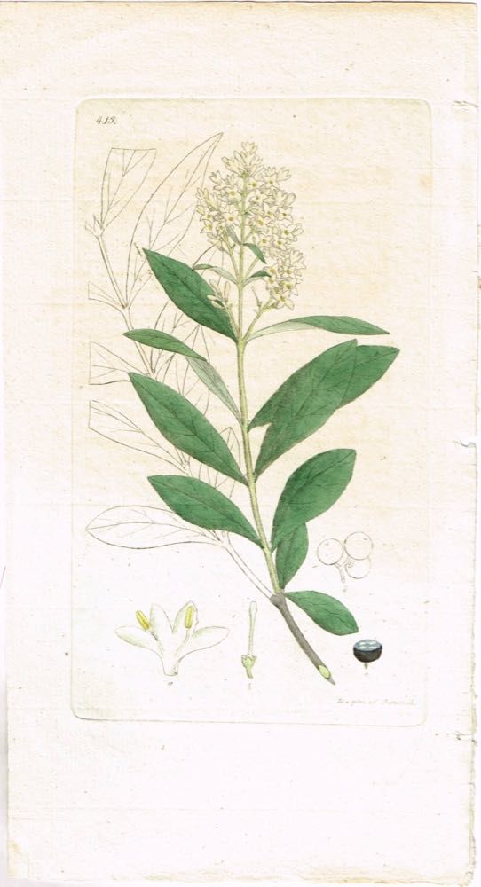 Pl. 415. (Liguster / Ligustrum Vulgare). Fra verket Svensk Botanik.