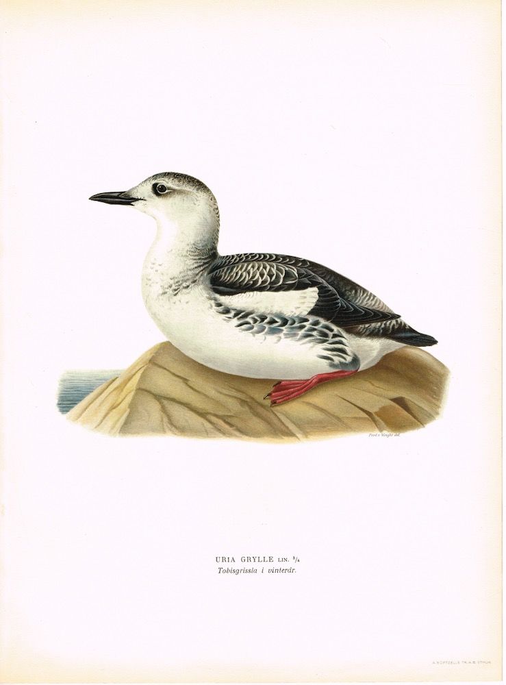 Uria grylle. Tobisgrissla i vinterdr. (Teist). Fra verket “Svenska fåglar efter naturen och på sten ritade ... “