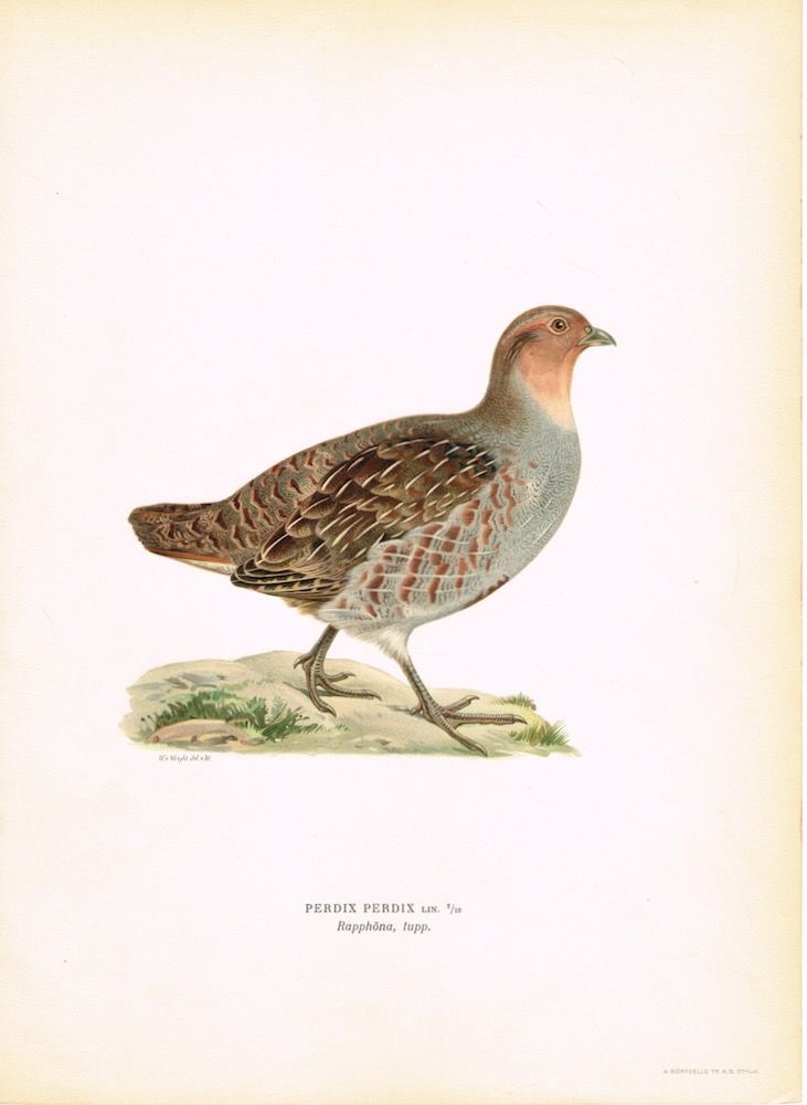 Perdix perdix. Rapphöna, tupp. (Rapphøne, hann). Fra verket “Svenska fåglar efter naturen och på sten ritade ... “