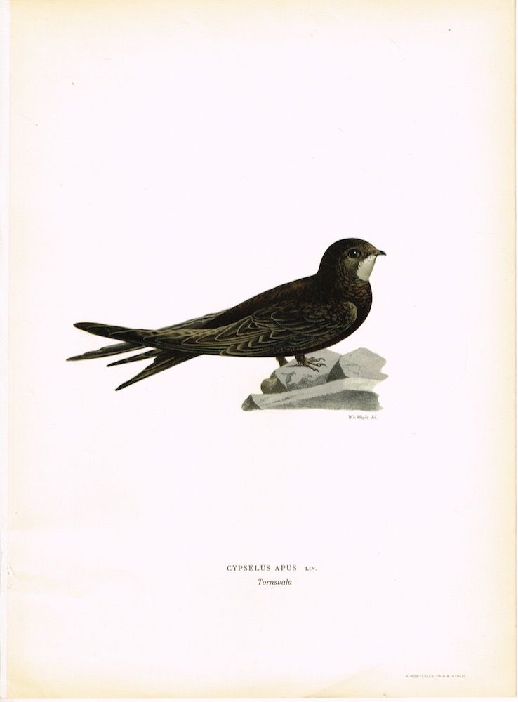 Cypselus apus. Tornsvala. (Tårnseiler). Fra verket “Svenska fåglar efter naturen och på sten ritade ... “