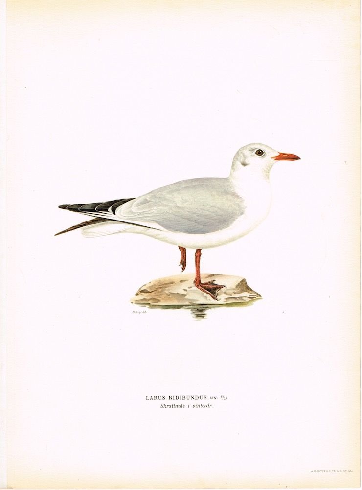 Larus ridibundus. Skrattmås i vinterdr. (Hettemåke). Fra verket “Svenska fåglar efter naturen och på sten ritade ... “