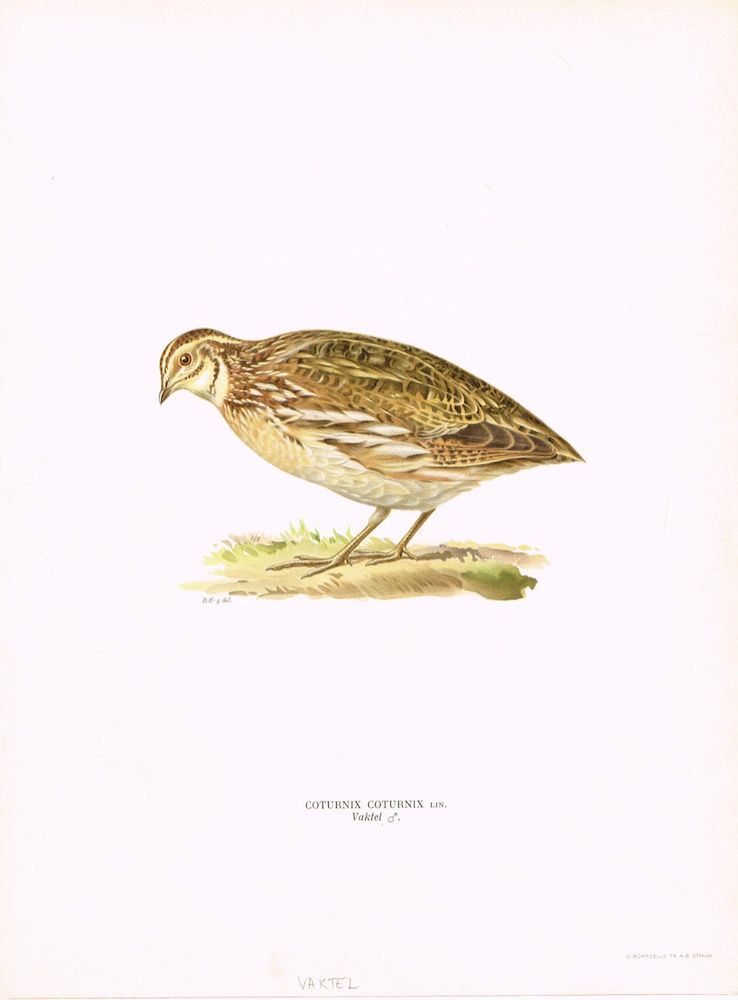 Coturnix Coturnix. Vaktel. Fra verket “Svenska fåglar efter naturen och på sten ritade ... “