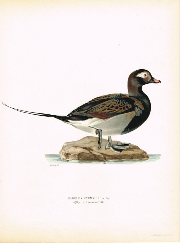 Harelda hyemalis. Alfågel i sommardräkt. (Havelle). Fra verket “Svenska fåglar efter naturen och på sten ritade ... “