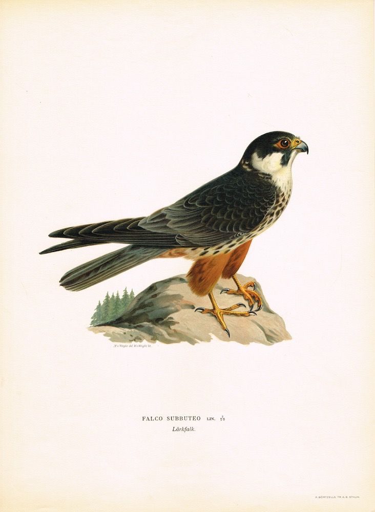 Falco subbuteo. Lärkfalk (Lerkefalk). Fra verket “Svenska fåglar efter naturen och på sten ritade ... “