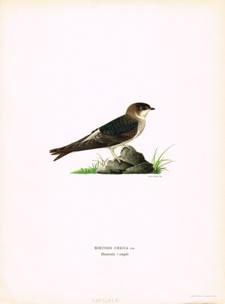 Hirundo urbica. Hussvala i ungdr. (Taksvale). Fra verket “Svenska fåglar efter naturen och på sten ritade ... “